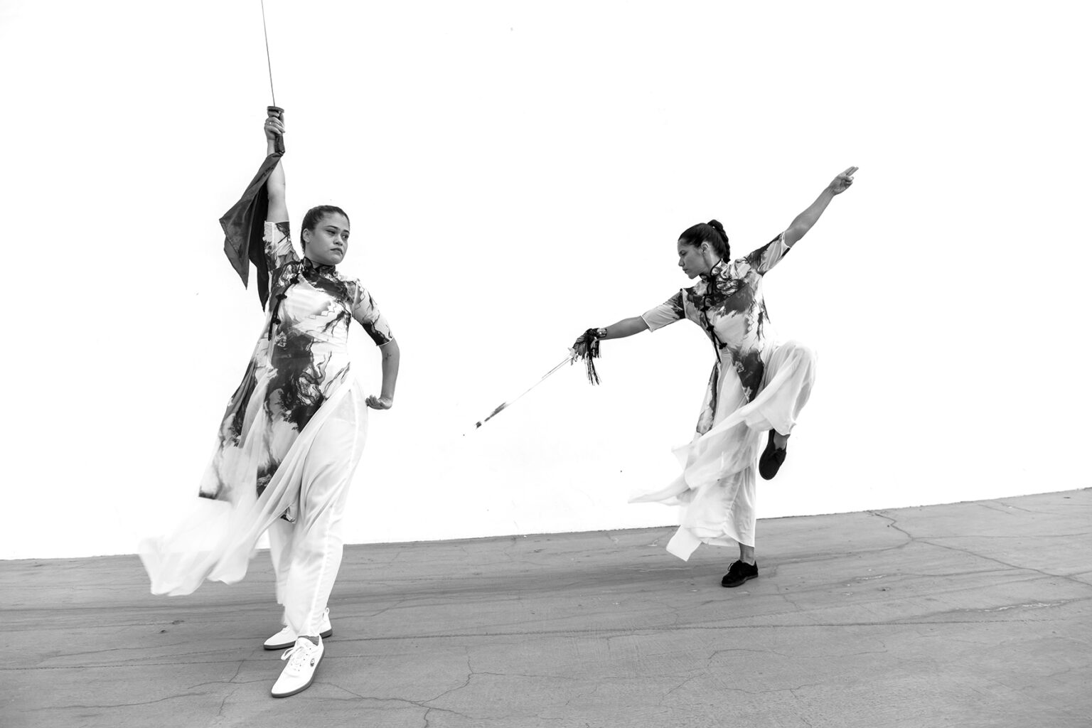 Em cena, as intérpretes Carol Barreiro e Kimberlly Lima desenvolvem uma partitura coreográfica que estabelece um diálogo entre a dança e o Wushu, arte marcial conhecida como Kung Fu. A movimentação combina trechos coreografados e momentos de improvisação.